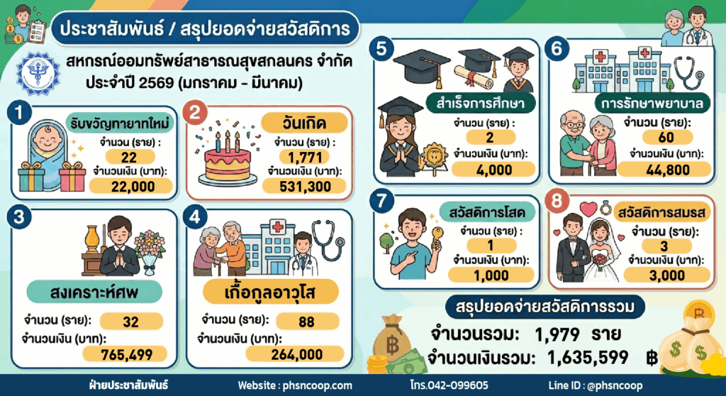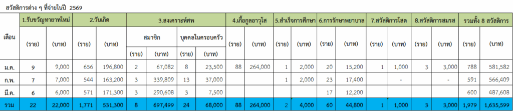 ประชาสัมพันธ์ สรุปยอดจ่ายสวัสดิการ