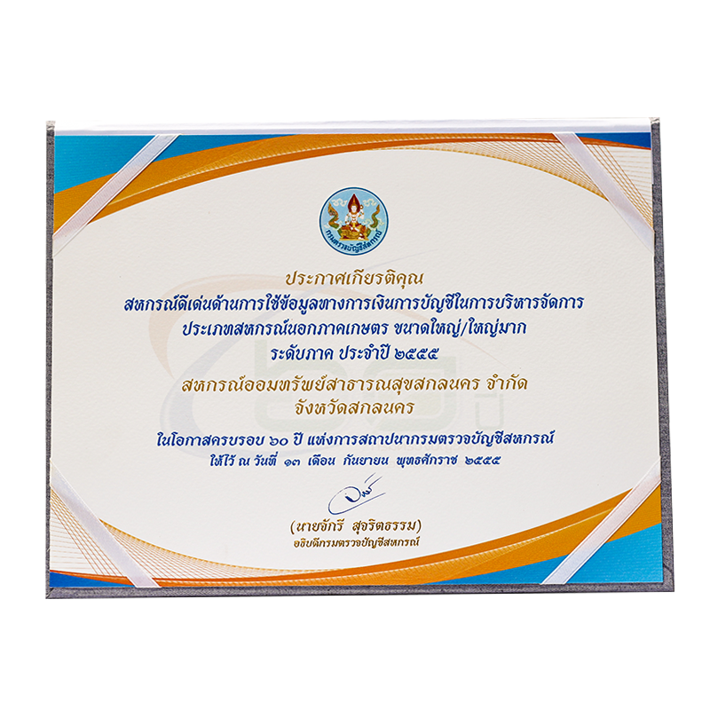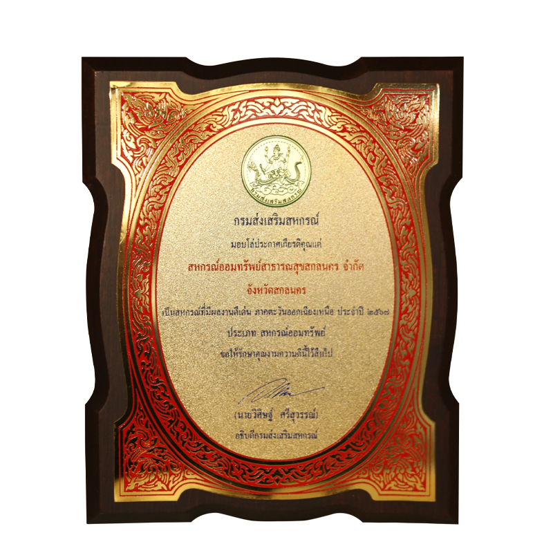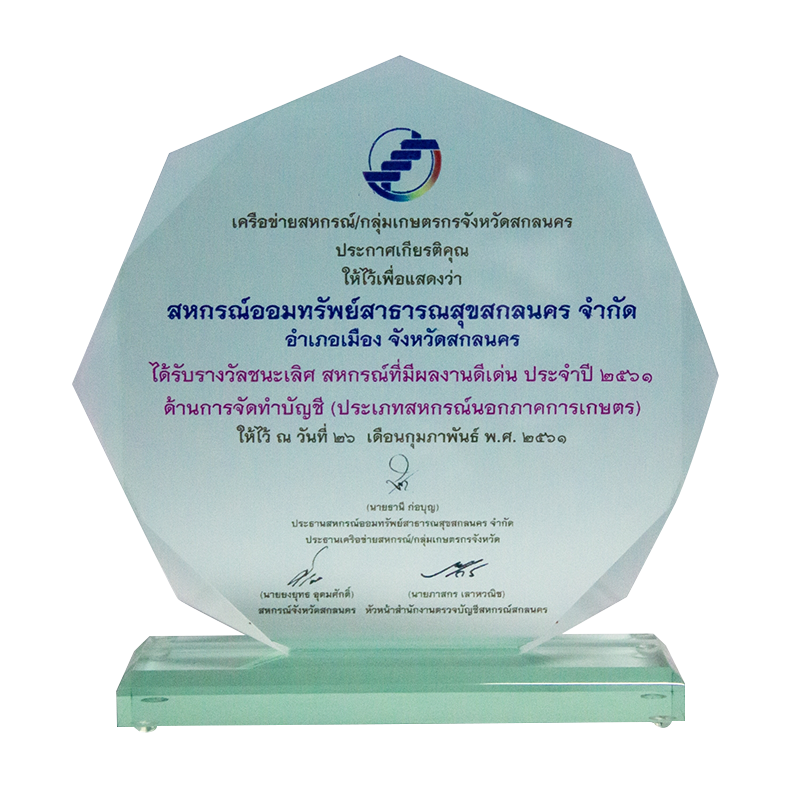 ได้รับรางวัลสหกรณ์ที่มีผลงานดีเด่น ระดับจังหวัดสกลนคร ประจำปี 2566 ประเภทสหกรณ์นอกภาคการเกษตร