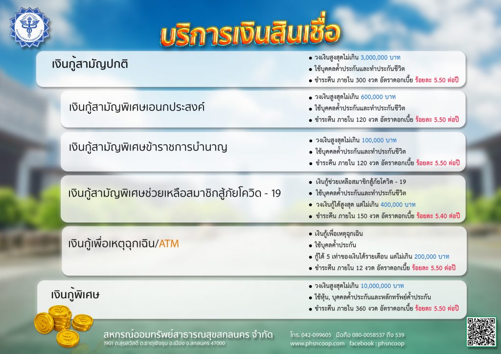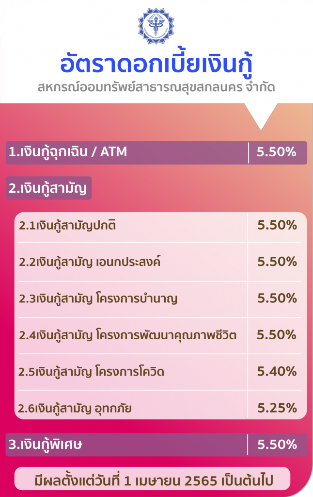 อัตราดอกเบี้ยเงินกู้ สหกรณ์ออมทรัพย์สาธารณสุขสกลนคร จำกัด