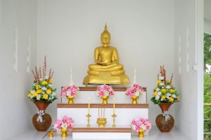 3. ดอกไม้หรือพวงมาลัย หมายถึง การสักการะพระสงฆ์