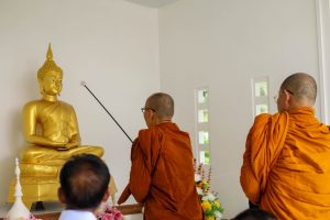 ตั้งนะโม 3 จบ และกล่าวคำบูชาว่า “เสสัง มังคะลายาจามิ”