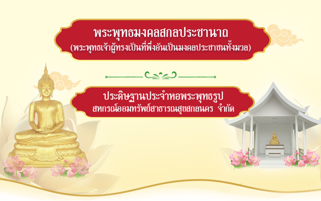 จากการมีดำริอันเป็นบุญของ ท่าน ดร.ธานี ก่อบุญ ประธานสหกรณ์ออมทรัพย์สาธารณสุขสกลนครจำกัดชุดที่ 42 พร้อมคณะกรรมการดำเนินการและฝ่ายจัดการในการจัดสร้างหอพระเป็นที่ประดิษฐานพระพุทธรูปไว้เป็นที่สักการะ เป็นศูนย์รวมจิตใจของมวลสมาชิกสหกรณ์ออมทรัพย์สาธารณสุขสกลนครและผู้มาติดต่องานที่สหกรณ์ฯ เพื่อให้เกิดความเป็นสิริมงคลน้อมนำจิตใจ ให้เลื่อมใสในบุญกุศลที่องค์พระสมเด็จพระสัมมาสัมพุทธเจ้าทรงเทศนา สั่งสอน โดยมีพระพุทธรูปเป็นองค์แทนให้เกิดการระลึกถึงหลักพระธรรมคำสอน น้อมนำไปสู่การปฏิบัติดี ปฏิบัติชอบ เกิดความดีงามต่อตนเองครอบครัวและผู้อื่นโดยเฉพาะหลักธรรมความซื่อสัตย์สุจริตยิ่งเป็นหัวใจของการดำเนินงานสหกรณ์ออมทรัพย์